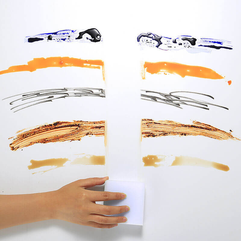 Ao entrar em contato com a superfície suja, a esponja mágica entra em ação, liberando as suas micro substancias limpadoras, ela age como um apagador, removendo com muita facilidade e sem esforço qualquer sujeira grudada.