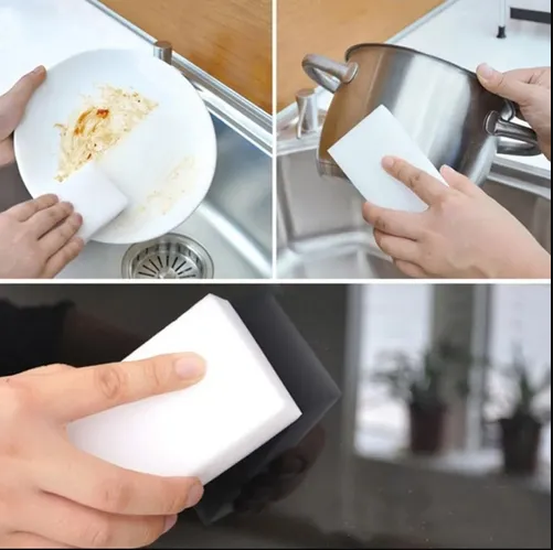 Esqueça as esponjas comuns que você compra no supermercado, a esponja mágica é diferente, com ela, você não necessita de produtos químicos para fazer a limpeza, seu material possui micro substancias cristalinas especiais, que facilitam na hora da limpeza, removendo com facilidade qualquer sujeira, e ainda te fazendo economizar dinheiro com produtos químicos (detergentes, sabão).