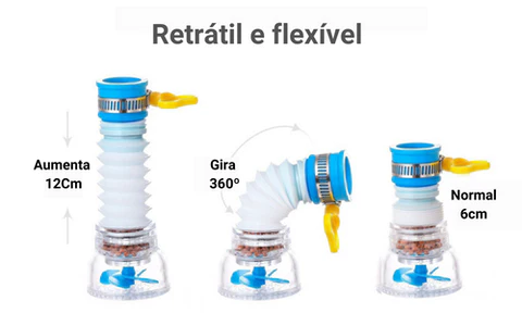 Conheça o extensor de torneira flexível de Água WaterClean, ele controla e mantém o fluxo constante da água que sai da torneira, além de possuir um filtro natural removedor de impurezas.