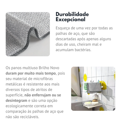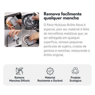Conheça o Pano Multiuso Brilho Novo, um utensílio essencial em qualquer casa. Com ele, você garante que suas panelas, talheres, fogão e azulejos fiquem sempre brilhando, eliminando a sujeira impregnada em segundos!