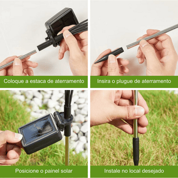 Sem complicações! Não precisa de cabos ou tomadas. Basta ligar o interruptor, posicionar a luminária no local desejado e garantir que o painel solar receba luz solar durante o dia. À noite, ela se acenderá automaticamente, iluminando seu jardim.