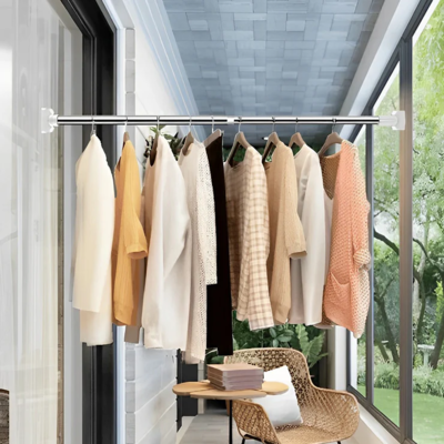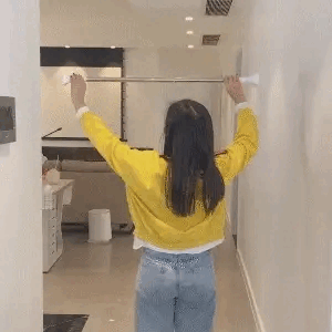 O Varal Retrátil é um bastão ajustável que se fixa nas laterais das paredes através de pressão, sem necessidade de furar ou usar fitas colantes.